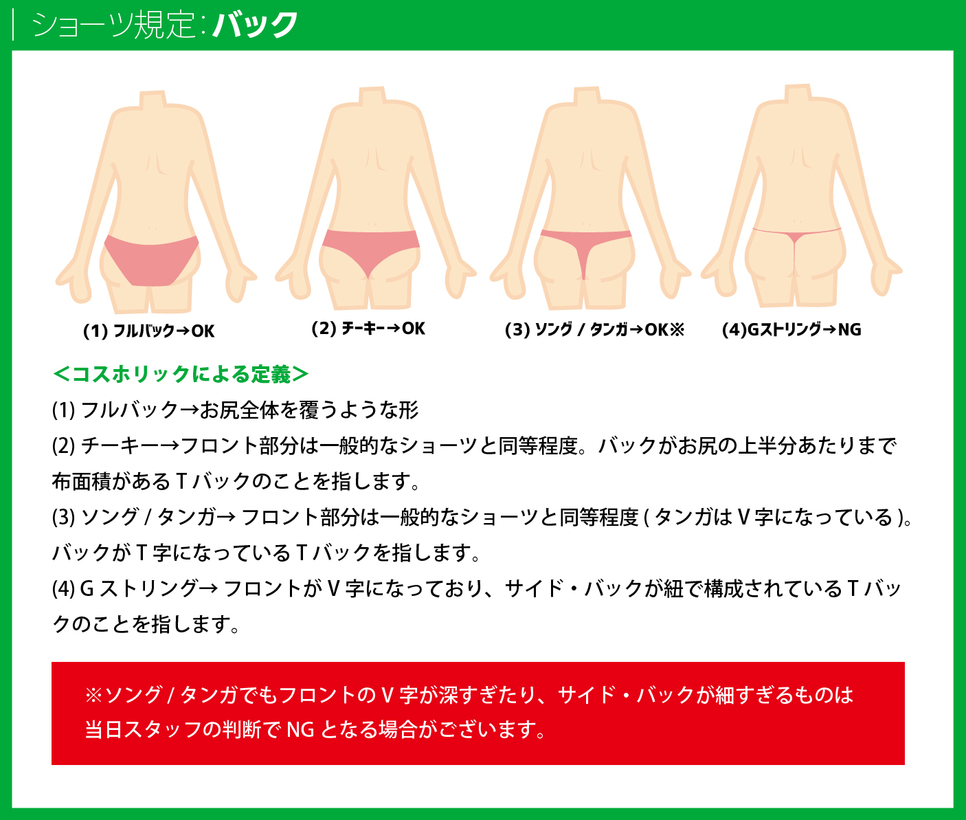 ▶︎上記以外の衣装についても、スタッフの判断で修正・禁止をお願いする場合があります